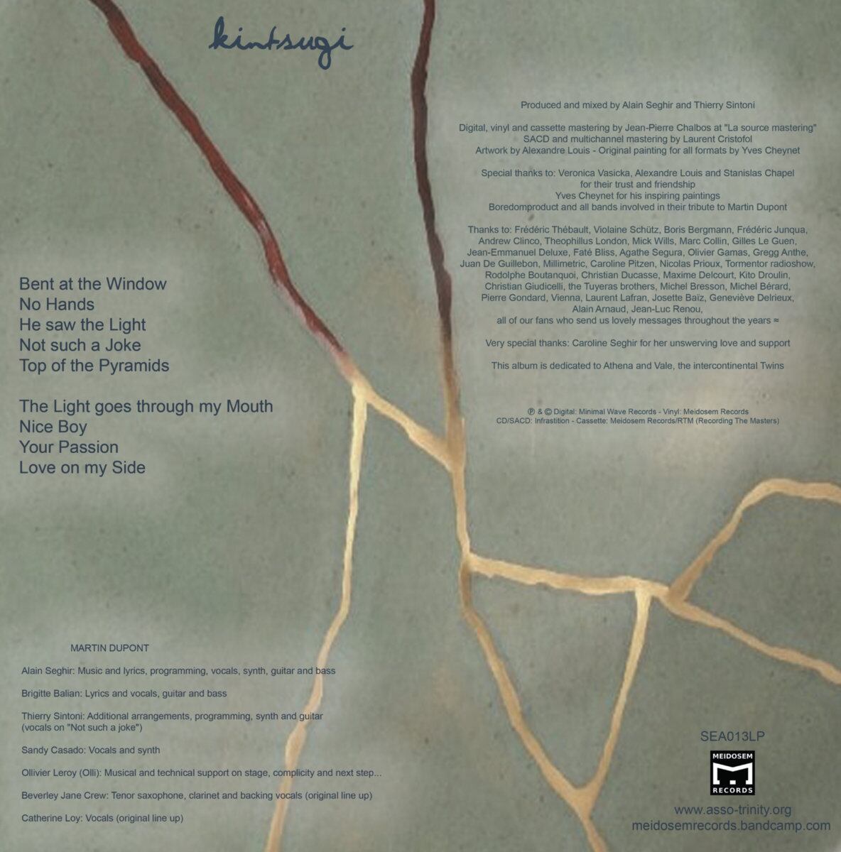 In collaboration with Meidosem and Infrastition, Minimal Wave proudly presents Kintsugi, a new album by the highly lauded French group Martin Dupont. The album features lush re-works of their old songs, originally released on their highly sought-after 1980s albums. The French band is known for making beautiful, heady electronic, with striking, poetic vocals. A hard-to-classify group from Marseille with a cult following and some mainstream success, Martin Dupont has inspired some of the luminaries of the contemporary music scene crossing many genres from trip-hop to electro to techno. Kintsugi reassembles their old spirit that is colorful, enthusiastic, and delicate, yet also melancholy and mysterious. A mixture of hot and cold, light and dark. Martin Dupont’s music is considered electronic though they also incorporate guitars and clarinets. They are described by many as New Wave, though their music truly transcends genres. Listen to Kintsugi, a collection of Martin Dupont’s emotive songs that have now been reinvigorated with a larger-than-life presence.