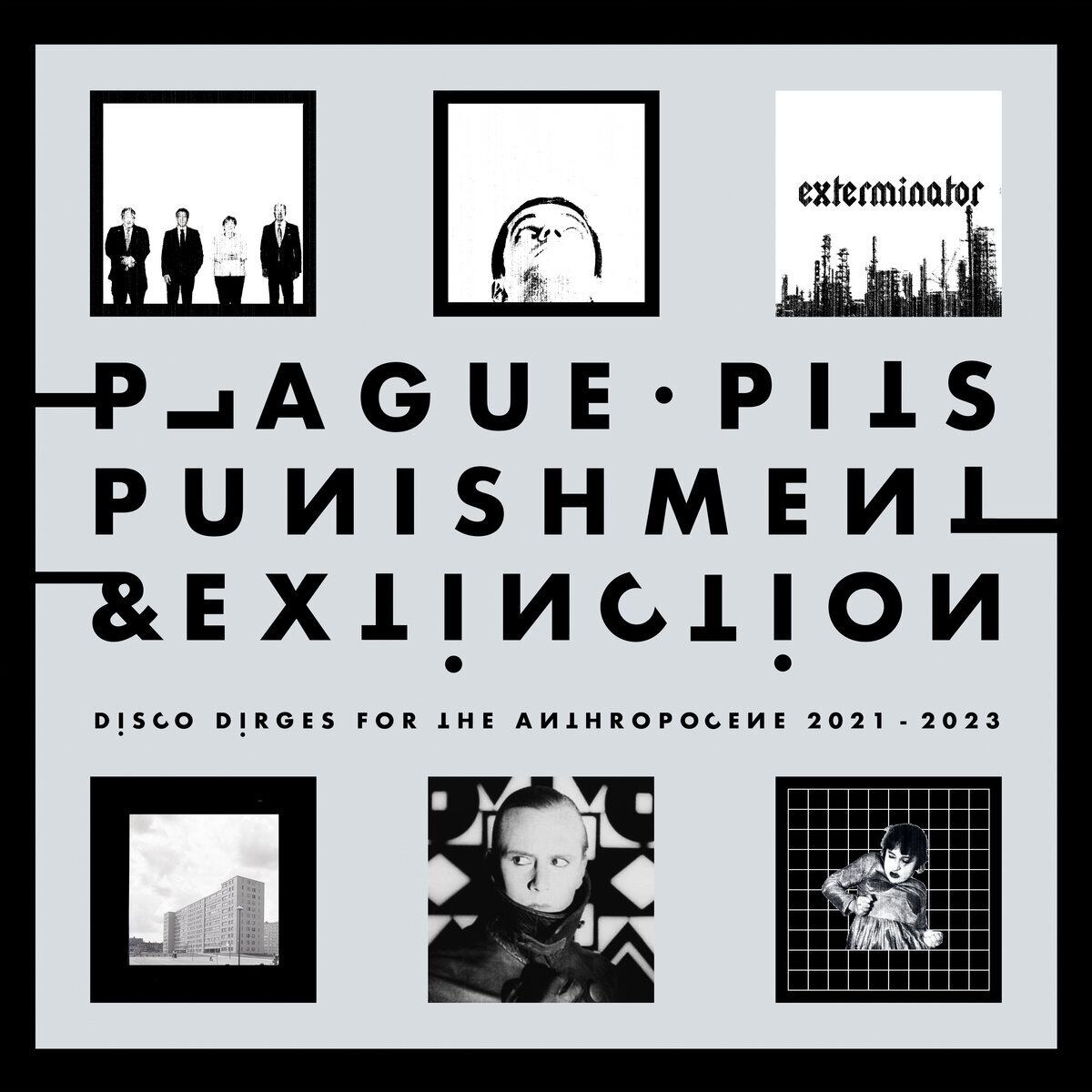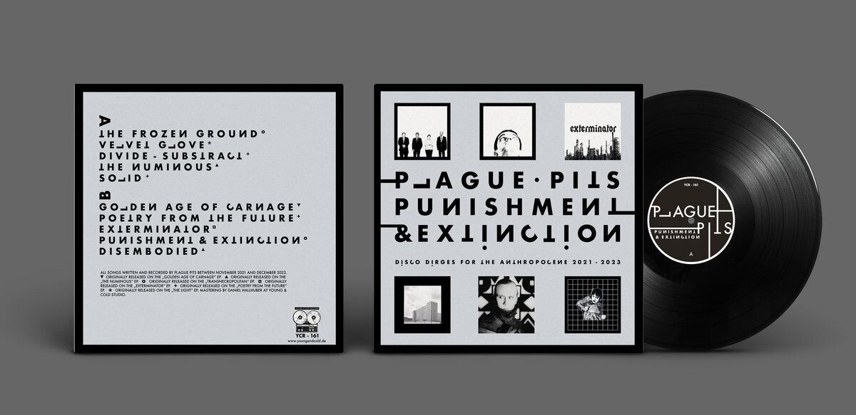 PUNISHMENT & EXTINCTION compiles some of the stand-out tracks from an array of self-released, cassette-only EPs Plague Pits have put out since late 2021. On the ten songs they touch on topics like humanities failure to face the climate crisis (“Golden Age of Carnage”, “Exterminator”) or the dehumanizing effects of neoliberalism (“The Numinous”, “Divide – Subtract”), while running the gamut of “Kraftwerk-like clinical machine-funk rhythms, the stripped-down polyrhythms of Cabaret Voltaire, the surreal unpredictability of the Residents, the adrenaline pumping dancefloor New Beat of DAF, Neon Judgment and Front 242 combined with a not insignificant Euro Synthpop-style wistful melodic appeal" (Fabrizio Lusso, White Light // White Heat).