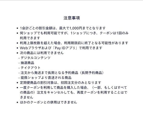 ※クーポンは何度でも(=複数ショップで)使用できますが、1ショップにつき1回のみ使用できます。